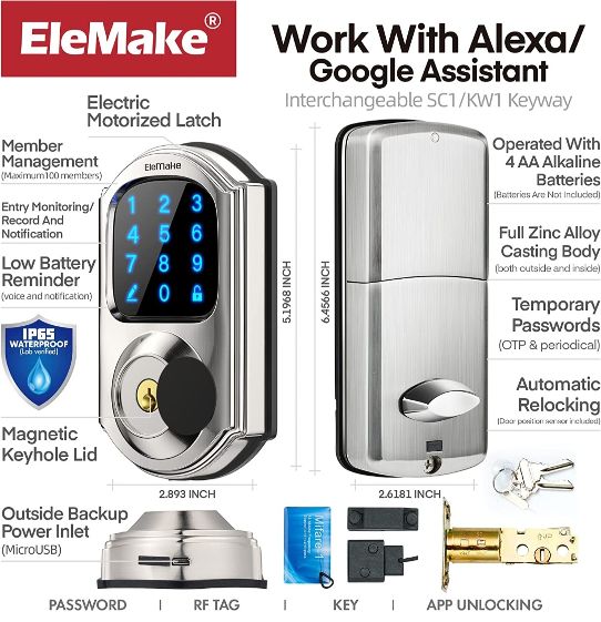5-in-1 Keyless Entry Smart Door Lock: Password, RF Card, Keyed and Bluetooth Remote Access