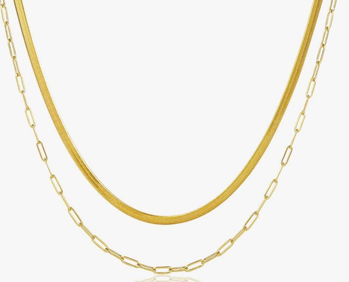 (Jewelry) Gxlilp Layered Choker Necklaces for Women/14K Gold Plated Layering Necklaces/Snake Chain Charm Necklaces/Snake Chains Paperclip Layered Chains/Necklaces for Girls-Women