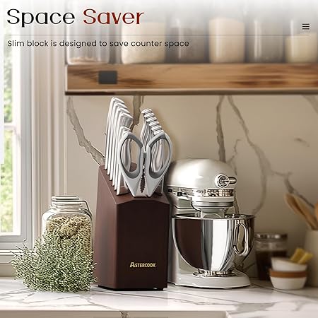 - 【Premium Kitchen Knife Block Set】 Ultra sharp, full tang, rust resistant technology, German 1.4116 stainless steel. Outstanding craftsmanship, cutting edge technology, stunning design, and superior materials. This is not only the best choice for professional kitchen or home use, but also the highest grade for gifts.