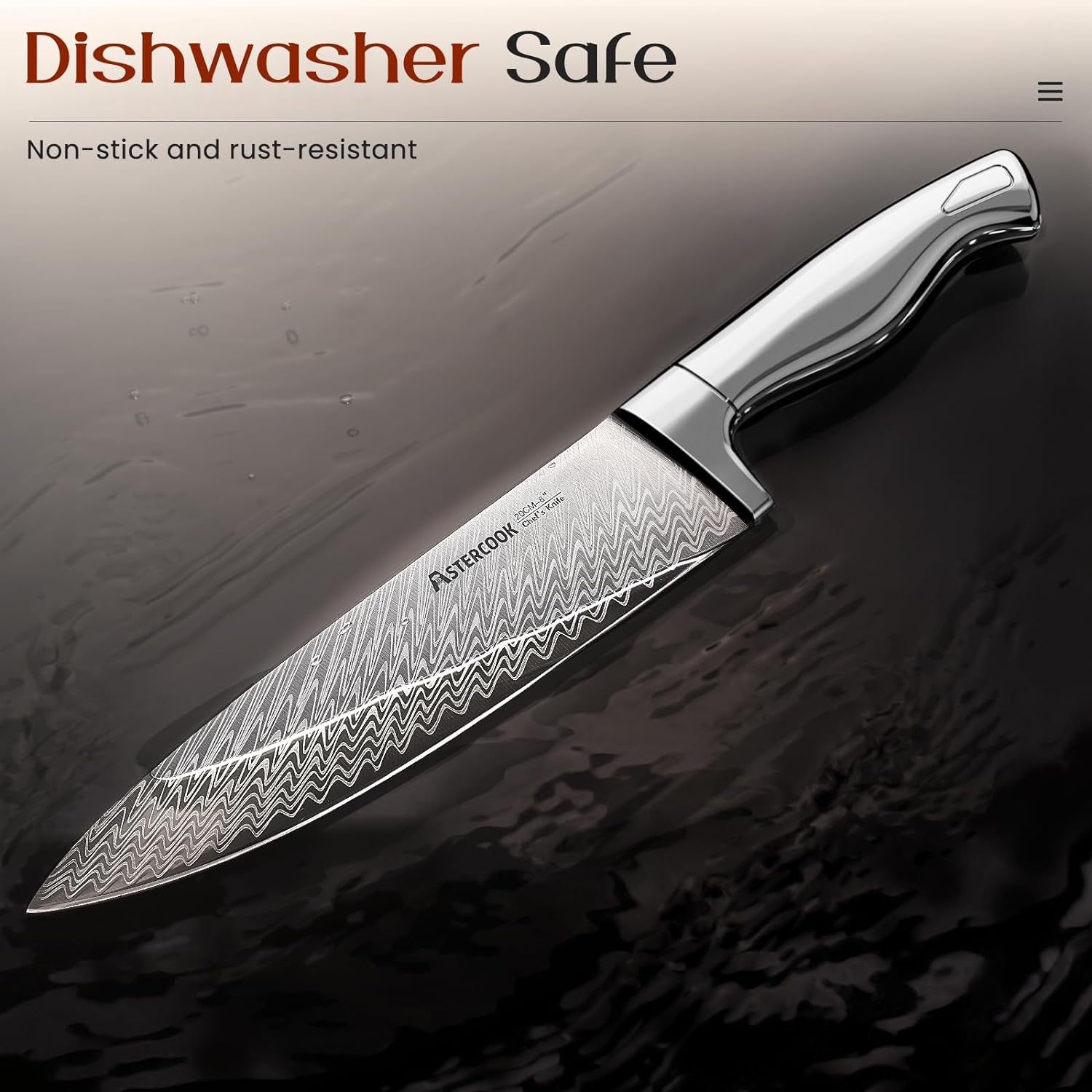 - 【Dishwasher Safe Kitchen Knife Set】 Each knife is dishwasher tested 999 times. Exclusive patented anti-rust technology ensures that they remain in the best condition after intense rinsing in the dishwasher