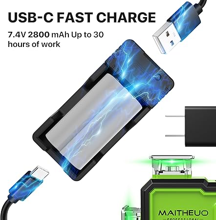 Safety level-Class II Laser & Bright Laser Level (<1mW Power Output): The MAITHEUO laser level emits a bright, clear green laser beam that is visible up to 100 feet away. Can adjust the three brightness modes of the laser through the M key. In the brightest mode, the brightness of the laser line increases and flickers fast, which is suitable for use in bright environments. The working range of the laser with normal brightness can reach 30m/100FT.