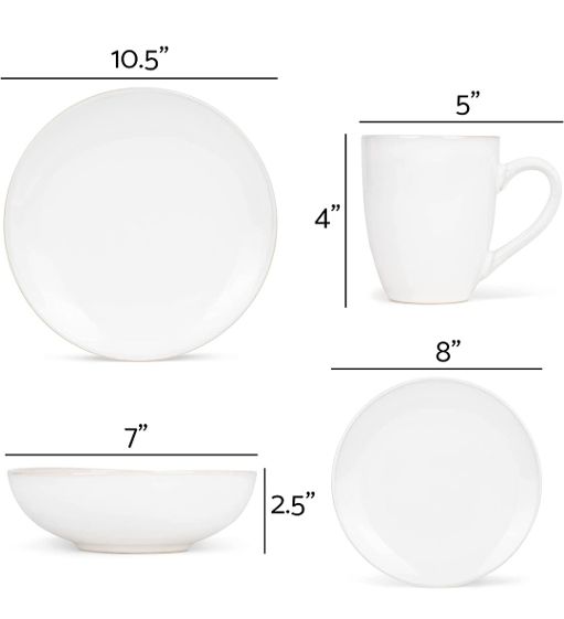 Dinner Plate Measures Approximately 10.5 Inches in Diameter, Salad Plate Measures Approximately 8 Inches in Diameter, Bowl Measures Approximately 6.25 Inches Across Holds Approximately 18 Fluid Ounces, Mug Holds Approximately 14 Fluid Ounces