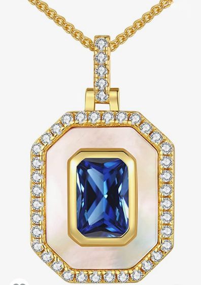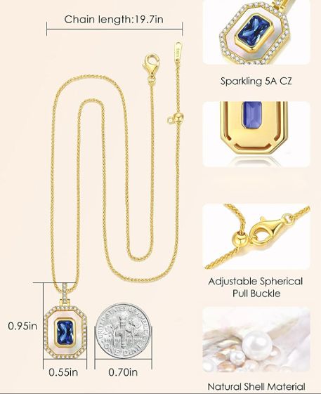 (Jewelry) Square Birthstone Pendant Necklace/Women/Sterling Silver Mother-Of-Pearl Necklace