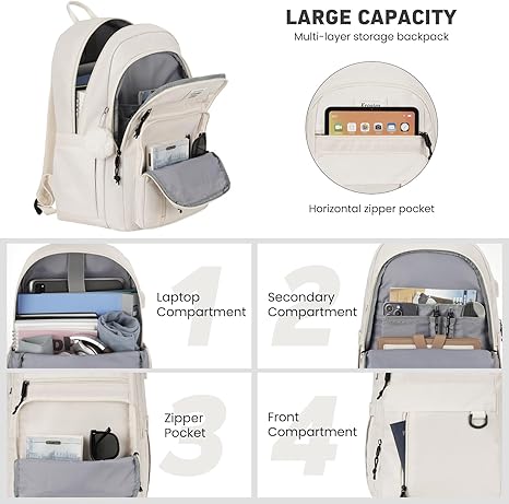 - ❤Lots of storage space and plenty of pockets, 1 roomy main compartment and 1 front compartment/ Carry all your textbooks, A4 binders, magazines, headset, cellphone, pens, keys. 3 front zip pockets can put your passport, glasses, notebook. 2 side pockets for water bottle, umbrella, etc.